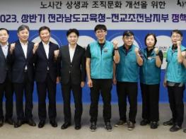 전라남도교육청과 전국교직원노동조합 전남지부가 25일 전라남도교육청 중회의실에서 ‘2023년 상반기 정책협의회 개회식’을 가졌다.전남교육청과 전교조 전남지부는 이번 정책협의회를 통해 최근 발생한