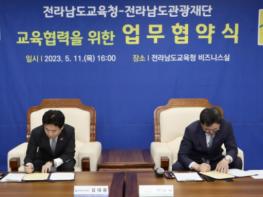 전라남도교육청이 5월 11일 전라남도교육청 비즈니스실에서 전라남도관광재단과 교육협력을 위한 업무협약을 체결했다.이번 협약은 지역 관광자원을 활용한 교육협력 사업 발굴과 지원 등 공생의 교육협력