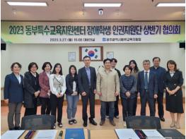 광주동부교육지원청이 지난 27일 대회의실에서 ‘장애학생 인권지원단’ 위원에게 위촉장을 수여하고 활성화를 위한 상반기 협의회를 실시했다.28일 동부지원청에 따르면 동부지원청 중등특수교육지원과 정