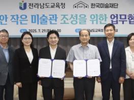 전라남도교육청이 한국미술재단과 손잡고, 학교 안에 작은 미술관을 조성하는 사업을 본격 추진한다.전남교육청과 한국미술재단은 29일 청사 비즈니스실에서 ‘학교 안 작은 미술관 사업을 위한 업무협약’