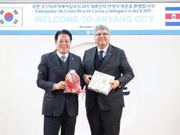 안양시는 최대호 시장이 지난 17일 오전 11시40분 안양시청 3층 접견실에서 호르헤 엔리케 발레리오 에르난데스 주한코스타리카 대사와 코스타리카 커피 산업을 총괄하는 공식 연구·관리 기관인 코스타리카