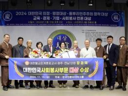 [중앙뉴스라인 = 전은희 기자] 2024년 11월 15일, 광주 서구 상무지구 JS컨벤션 2층에서 열린 공법단체 한국언론미디어그룹의 8주년 기념식 및 대한민국 의정 행정 봉사 대상 시상식에서 장경덕 대한불교조…