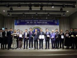 [중앙뉴스라인 = 전은희 기자] 2024년 11월 15일, 광주 서구 상무지구 JS컨벤션 2층에서 열린 한국언론미디어그룹의 8주년 기념식 및 대한민국 의정대상 시상식에서 전기범 치과원장이 '2024 올해의 사회봉…