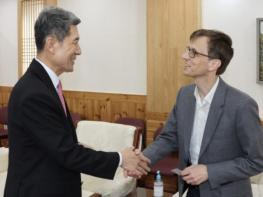 박진 외교장관은 방한 중인 ?빅터 차(Victor Cha)? 미 전략국제문제연구소(CSIS) 한국석좌 및 ?라몬 파체코 파르도(Ramon Pacheco Pardo)? 킹스컬리지런던 교수(CSIS 한국석좌실 비상임연구원)를 10월13일
