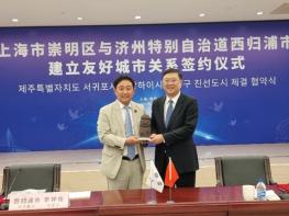 서귀포시는 28일 서귀포시교류자문단과 함께 중국 상해시 충밍구를 방문하여 상해 충밍구청장, 관계 공무원, 의원, 양 도시 민간단체 및 기업 등 관계자 50여명이 참여한 가운데 충밍구 컨벤션센터에서 친선