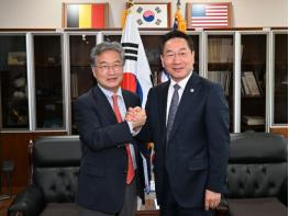 산업통상자원부 정인교 통상교섭본부장은 3월 27일 서울 대한상공회의소 접견실에서 페데리코 쿠에요(Federico Cuello) 주한도공대사와 면담을 통해 오늘날 글로벌 통상환경과 관련한 의견을 교환하고, 양국