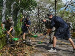 [중앙뉴스라인=송상교기자] 진해지역에 주둔하고 있는 해군부대 장병들이 6일 오후 창원시 진해구청 요청으로 진해 안민고개에서 성산구 일대를 연결하는 약 4km 구간에 대한 잔해물 정리 작업을 실시했다.