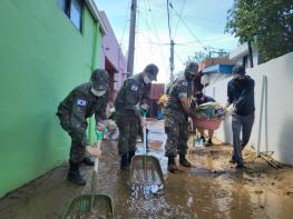 [중앙뉴스라인=송상교기자] 해군항공사령부(사령관 준장 이상식)는 "6일 오후 경상북도 포항시 동해면 일대에서 제11호 태풍 '힌남노' 피해복구 대민지원을 실시한 가운데, 장병들이 폭우와 강풍으로 인해 …