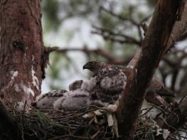 전남 함평군 해보변 야산에서 참매(천연기념물 323-1호)가 3마리의 새끼를 낳아 육추를 마치고 둥지를 떠나는 모습이 카메라에 담겼다.