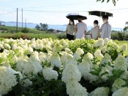 여름이 절정에 다다른 1일, 함평군 안악해변 ‘화이트정원’에 싱그러운 여름 수국이 만개해 지나가는 사람들의 발길을 머물게 하고 있다. ‘농산어촌 활력화 경관 조성사업’ 일환으로 손불면 안악해변 일