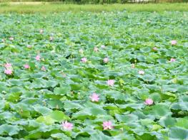 전남 담양 담빛문화지구에 위치한 고가제에 붉은 연꽃이 가득 피었다.고가제 주변으로는 산책길이 조성돼 주민의 사랑을 받는 힐링 명소로 자리잡고 있다.