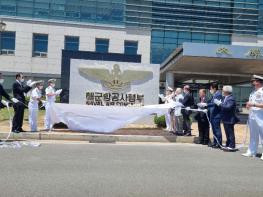 7월 15일 오전 이종호 해군참모총장을 비롯한 내외귀빈들이 해군항공사령부 조형물 제막식에 참석해 제막을 하고 있다.해군항공사령부는 해상경계작전 핵심 부대로서 적 잠수함 위협 대응을 비롯해 해상항공…