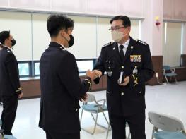 목포해양경찰서(서장 이종욱)는 25일 오전 청사에서 코로나19 방역수칙을 준수한 가운데 제244기 신임 해양경찰관 36명에 대한 전입신고식을 개최했다.이종욱 목포해양경찰서장이 제244기 신임 해양경찰관들…