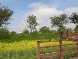 조선시대 3대 방죽의 하나이자 세계관개시설물 문화유산으로 등재된 합덕제가 유채꽃의 노란 물결로 출렁이며 상춘객들의 마음을 사로잡고 있다.