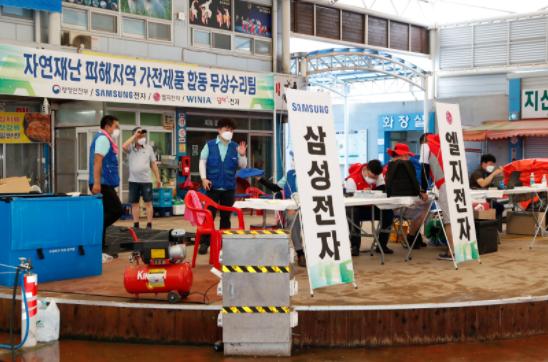 지난 9일부터 16일까지 조금리 5일 시장에서 삼성전자, LG전자, 위니아딤채·위니아전자가 합동무상수리팀을 운영, 피해 가전 제품에 대한 점검·수리를 실시하고 있다.