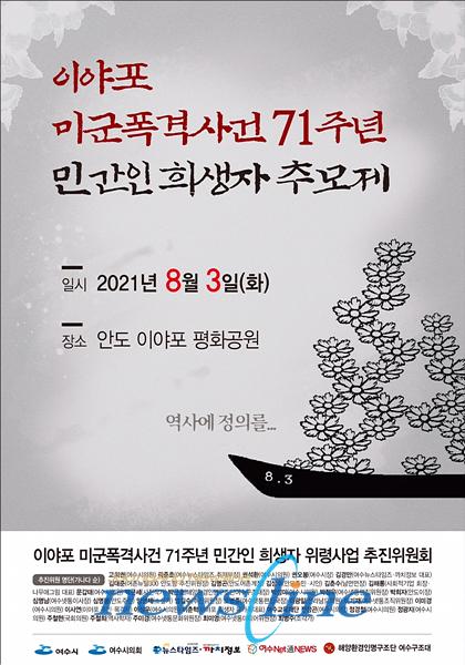 이야포 미군폭격사건 71주년 민간인희생자 위령사업추진위원회(위원장 엄길수)는 ”여수시와 여수시의회 후원으로 1950년 8월 3일 이야포 해변에서 있었던 미군기 폭격사건 피해자 추모제를 오는 8월 3일 당일 이야포 현장에서 갖는다“고 28일 밝혔다.