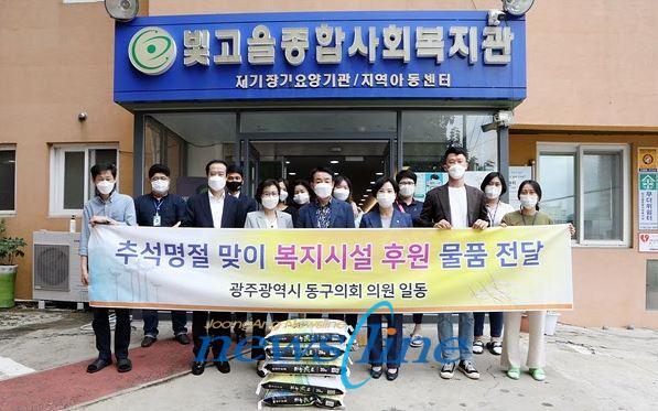 | 광주광역시 동구의회는 정미용 의장을 비롯한 전체의원은 지난 10일(금) 우리 민족 고유 명절인 한가위 추석을 맞이하여 관내 사회복지시설인 빛고을종합사회복지관 등 17개 시설을 방문하여 격려물품을 전달했다. |