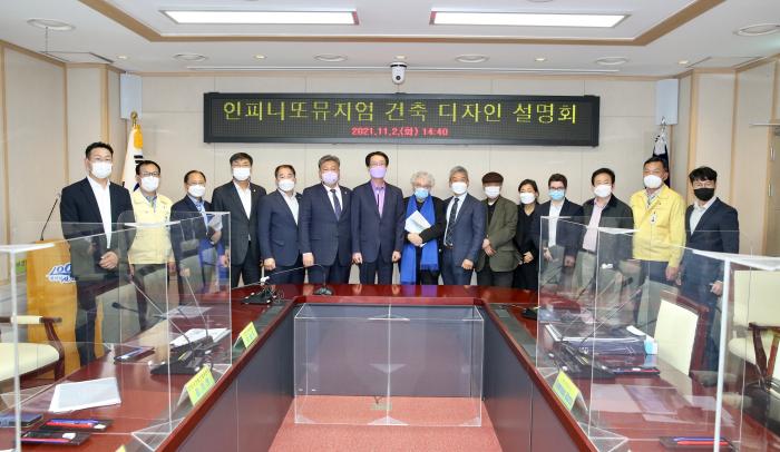 지난 11월 2일 전남도청에서 김영록 도지사, 박우량 군수, 건축가 마리오보타, 조각가 박은선이 참여한 가운데 인피니또 뮤지엄 건립 업무협약을 체결했다.