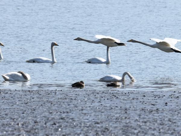 [중앙뉴스라인, 송상교기자] 완연한 봄 날씨를 보인 10일 전남 강진군 강진읍 강진만(灣)에서 월동을 위해 날아왔던 겨울 철새 큰고니(천연기념물 제201-2호) 무리가 돌아갈 생각이 없는 듯이 한가로운 모습으로 봄볕을 즐기고 있다.
