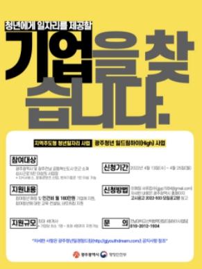 [중앙뉴스라인, 김용범기자] 광주광역시는 오는 25일까지 ‘광주청년 일드림하이(High) 사업’에 참여할 사업장 48곳을 모집한다.