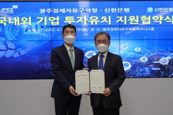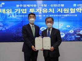 [중앙뉴스라인, 김용범기자] 광주경제자유구역청이 신한은행과 국내외 기업유치 촉진과 지원을 위한 협력관계 구축을 내용으로 하는 투자유치 지원 협약(MOU)을 체결했다.