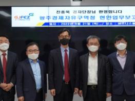 [중앙뉴스라인, 김용범기자] 광주경제자유구역청은 지난 21일 산업통상자원부의 경제자유구역 기획단과 간담회를 열고 광주경제자유구역의 혁신생태계 조성 및 활성화 방안 등 현안을 논의하고 건의 사항을 전달했다.