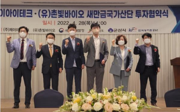 이날 협약식에는 ㈜제이아이테크 대표이사, (유)촌빛바이오 대표이사, 양충모 새만금개발청장, 나해수 전라북도 새만금해양수산국장, 황관선 군산시 산업혁신과장 등 30여 명이 참석했다.