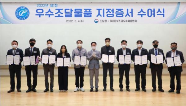 [중앙뉴스라인, 손영생기자] 조달청은 4일 서울지방조달청에서 혁신시제품 성공판정 5개 제품과 일반제품 68개 제품에 대한 우수조달물품 지정서 수여식을 개최했다.