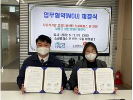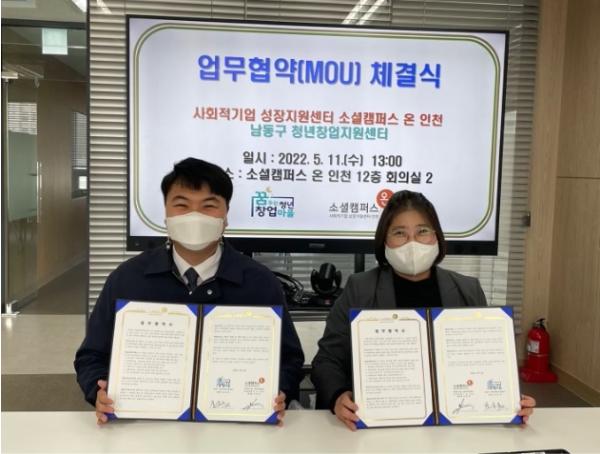 [중앙뉴스라인, 송상교기자] 인천시 남동구 청년창업지원센터는 최근 사회적기업 성장지원센터 ‘소셜캠퍼스온 인천’과 사회적 경제 분야 청년 창업지원을 위한 업무협약(MOU)을 맺었다고 11일 밝혔다.