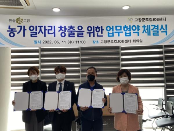 지난 12일 고창군로컬잡센터 회의실에서 김희진 센터장을 비롯해 고창농협 농촌인력중개센터 김정옥 센터장, 흥덕농협 농촌인력중개센터 김미선 센터장, 선운산농협 농촌인력중개센터 김선임 센터장 등이 참석한 가운데 ‘고창군 농가 일자리 활성화를 위한 업무협약식’을 개최했다.