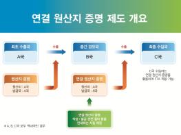 동일한 자유무역협정(FTA)을 체결한 역내국으로 재수출하는?물품은 중간 경유국에서 최초 수출국의 원산지증명에 기초해?연결 원산지증명을 작성, 발급할 수 있다.