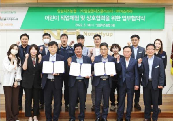 (사)임실엔치즈클러스터 사업단(이사장 임실군수)과 (주)키즈라라(대표 최영근), 임실치즈농협(대표 설동섭)이 지난 18일 임실치즈농협에서 임실N치즈 홍보?체험관 운영 업무협약(MOU)을 체결했다.