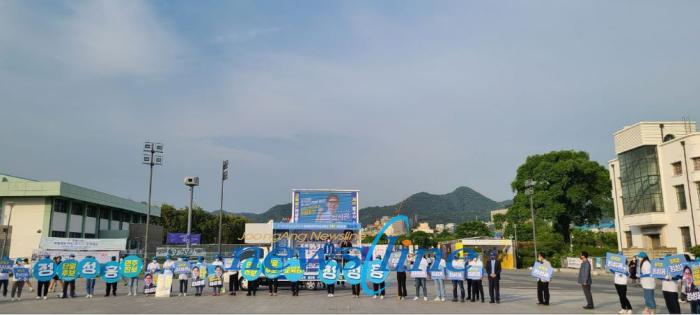 [중앙뉴스라인=송상교기자] 정성홍 광주광역시 민주진보교육감후보 선거 승리 출정식이 오늘(19일) 오후 5시 30분, 5.18민주광장에서 진행됐다.