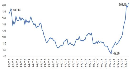 전력시장가격(SMP)은 거래시간별 수요·공급을 충족하는 가장 비싼 발전기(주로 LNG발전기)의 발전비용으로 결정 후 연료비와 무관한 전체 발전기에 적용되어,‘01년 전력시장 개설 이후 역대 최고이자 최초 200원대 기록했다.(’22.4월 202.1원/kWh)