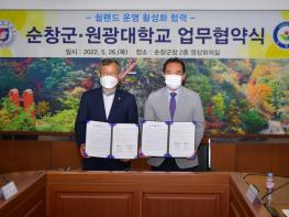 [중앙뉴스라인, 정영철기자] 순창군이 원광대학교와 쉴랜드 운영 활성화를 위한 업무협약을 체결했다.