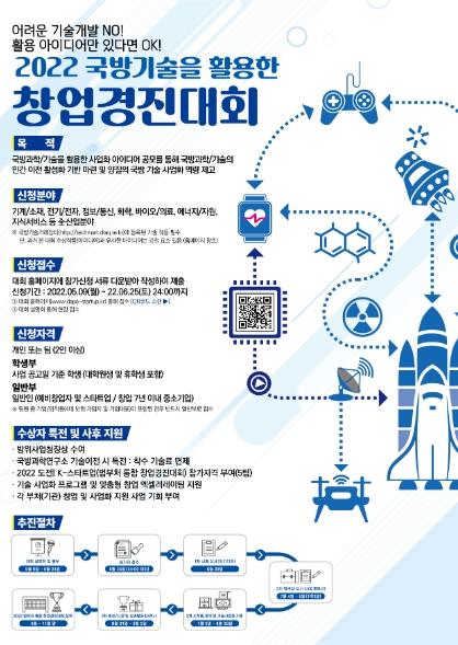 또한, 방위사업청은 대제전 주요행사 중 하나인‘국방기술 활용 창업경진대회’참가자도 5월 9일부터 6월 25일까지 모집 중이다.
