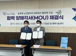 군은 임실행복나눔센터에서 농촌형 노인 일자리 사업 모델 발굴 및 전문인력 양성을 위해 지역 노인 일자리 전문기관인 임실시니어클럽과 (사)임실군마을가꾸기협의회가 업무 협약식을 가졌다고 10일 밝혔다.