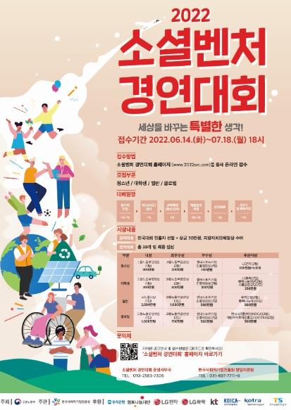 한국사회적기업진흥원(원장 정현곤)은 혁신적인 사회적기업 및 소셜벤처 아이디어 발굴을 위한 ?2022년 소셜벤처 경연대회? 참가자를 모집한다.
