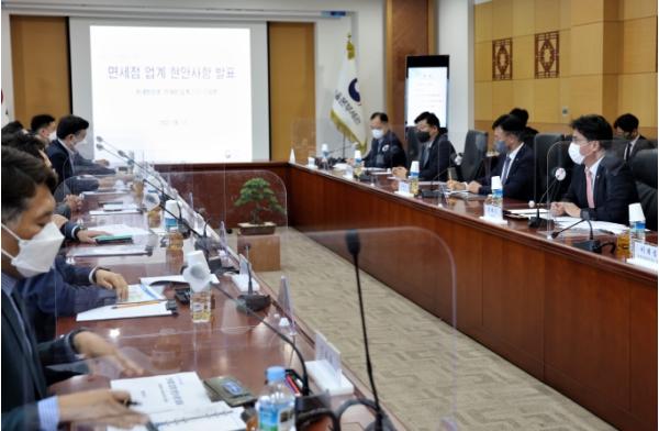 이번 간담회는 전세계적으로 코로나19 확산세가 진정되는 전환기적 상황에서 영업 정상화에 힘쓰고 있는 면세점 업계의 애로 및 건의사항을 듣고 지원방안을 마련하기 위하여 개최되었다.