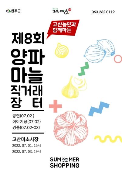 [중앙뉴스라인, 정영철기자] 완주군이 오는 7월 1일부터 3일까지 고산미소시장에서 제8회 양파·마늘 직거래장터를 개최한다고 밝혔다.