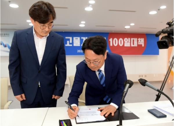 [중앙뉴스라인, 김용범기자] 강기정 광주광역시장은 1일 취임식 직후 첫 결재로 ‘고유가·고물가 민생 100일 대책’ 추진안에 서명했다.