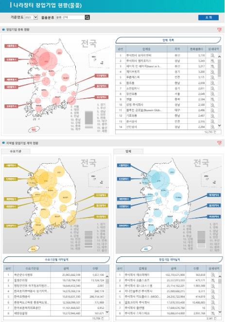 이번 시각화서비스는 그동안 창업기업 관련 데이터, 서비스가 적어 사용자가 정보 활용에 제한이 있고 이용이 불편하다는 국민의견을 반영해 시스템을 구축, 제공하게 됐다.