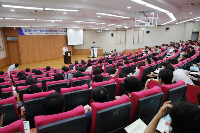 [중앙뉴스라인 = 천정자 기자] 전남대학교병원(병원장 이삼용)이 경영 혁신을 위한 2019년 상반기 관리자 워크숍을 27일 전남대의과대학 덕재홀서 성황리에 개최했다.