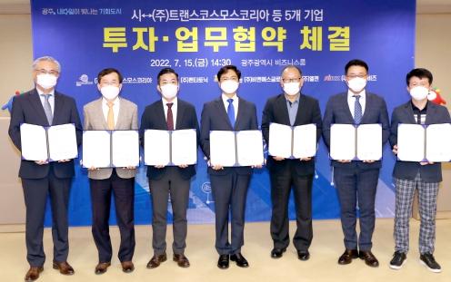 [중앙뉴스라인, 김용범기자] 광주광역시는 15일 시청 비즈니스룸에서 ㈜트랜스코스모스코리아 등 5개 기업과 108억원 규모의 투자협약을 체결했다.