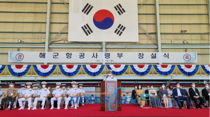 | 7월 15일 오전 해군 포항비행장에서 열린 해군항공사령부 창설식에서 이종호 해군참모총장은 훈시를 통해 “오늘 우리는 오랜 기간 각고의 노력 끝에 해군항공사령부 창설이라는 새로운 이정표를 세우게 됐다”며 “해군 항공전력은 연합ㆍ합동작전의 핵심인 만큼 항공작전개념을 보다 발전시키고 첨단 항공전력을 지속적으로 확보해 나가면서 해군 항공작전의 역량을 더욱 강화해 줄 것”을 강조했다.해군항공사령부는 해상경계작전 핵심 부대로서 적 잠수함 위협 대응을 비롯해 해상항공작전계획 수립은 물론 교육훈련, 정비, 군수지원, 관제 및 운항 등의 임무를 수행하게 된다. |