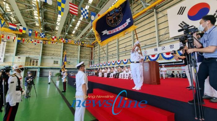 | 7월 15일 오전 해군 포항비행장에서 열린 해군항공사령부 창설식에서 이종호 해군참모총장이 부대기를 흔들며 부대창설을 축하하고 있다.해군항공사령부는 해상경계작전 핵심 부대로서 적 잠수함 위협 대응을 비롯해 해상항공작전계획 수립은 물론 교육훈련, 정비, 군수지원, 관제 및 운항 등의 임무를 수행하게 된다. |