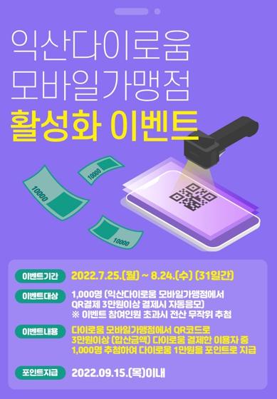 이 기간 중에 다이로움 모바일가맹점에서 합산금액 3만원 이상 QR결제를 이용한 사람들은 누구나 이벤트에 자동 응모된다. 시는 이 중 1,000명을 추첨하여 당첨자들에게 1만원의 다이로움 포인트를 9월에 지급할 예정이다.