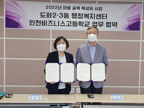 [중앙뉴스라인, 송상교기자] 인천 미추홀구 도화2,3동 행정복지센터는 29일 인천비즈니스고등학교와 마을골목특성화사업을 위한 협약을 체결했다.
