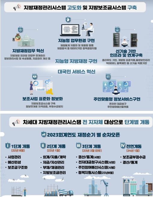 2022년 8월 예산편성 기능 1단계로 시행하고, 2023년 1월 2단계로 예산집행 및 지방보조금관리 포털 운영을 시행할 예정이다.