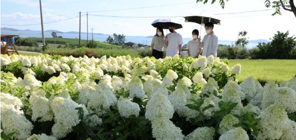 [중앙뉴스라인, 송상교기자] 여름이 절정에 다다른 1일, 함평군 안악해변 ‘화이트정원’에 싱그러운 여름 수국이 만개해 지나가는 사람들의 발길을 머물게 하고 있다.